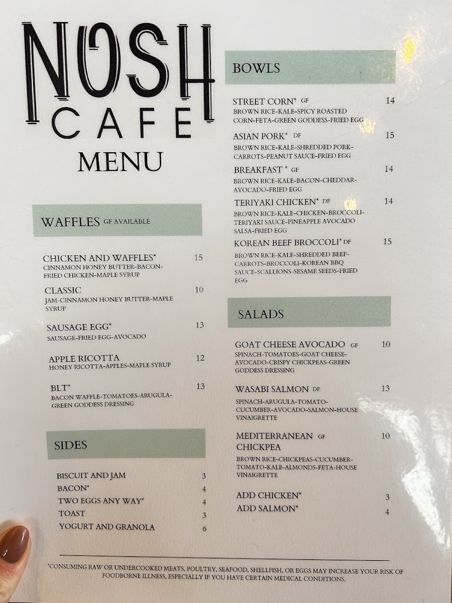 “ My husband and I had the best chicken and waffles from Nosh Cafe. Food 10/10! The staff are so kind and patient as well. Veronica was SO sweet and helpful the entire time. She was super understanding and helped when my family had a spill. Also, there are gluten-free options that super yummy! Kid/toddler friendly! Amazzziing! ”